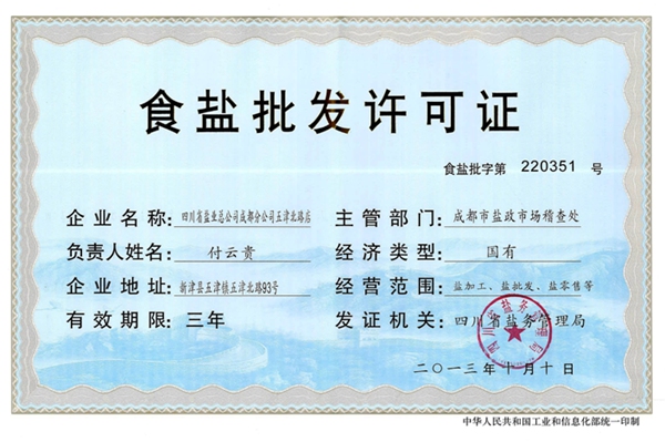 (五)分析情況:對一個持有食鹽批發許可證的食鹽定點生產企業/省級鹽業公司申請,為其訂立排他性代理合同的中間商領取食鹽轉(代)批發許可證。由于該證“進貨渠道”填制的是提出申請的持有食鹽批發許可證的食鹽定點生產企業/省級鹽業公司,因此不會形成食鹽批發許可證現有基數增加的情況。