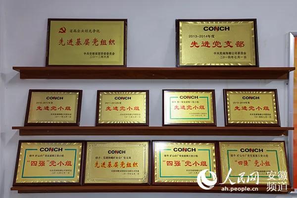 蕪湖海螺礦山分廠黨支部榮譽墻。人民網 王曉飛攝