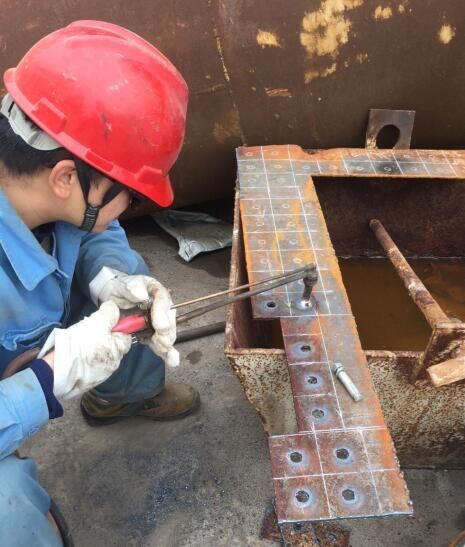 猶記4月間,郭雨宏師傅帶領(lǐng)胡建平和鄭武博為6#爐更換打字架——只見(jiàn)在郭師傅的指揮下,行車(chē)不斷將新打字架起吊、落下,對(duì)打字架的安裝位置進(jìn)行著精細(xì)調(diào)整,不知道反復(fù)了多少遍,終于聽(tīng)到郭師傅的那聲“好!”緊接著就是焊接。小胡和小鄭輪流上陣,戴著焊接專用的“面具”瞄準(zhǔn)焊接位置后就“開(kāi)火”——登時(shí),火花四濺!耀眼的白光真應(yīng)了網(wǎng)絡(luò)上流傳的“亮瞎眼”。焊接結(jié)束了,他們的衣服上也留下了火花光顧后的紀(jì)念。所以,如果看到他們穿著滿布小洞紗網(wǎng)似的衣服,請(qǐng)別驚訝,都是焊接時(shí)飛迸的火星子留的記號(hào)!