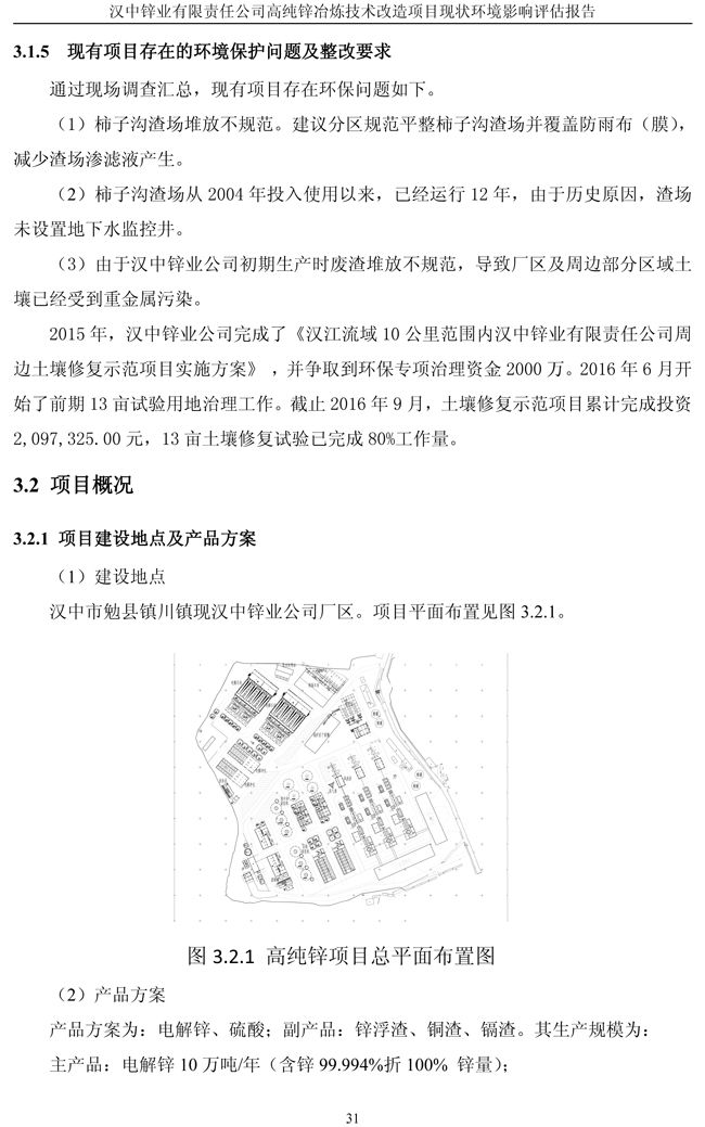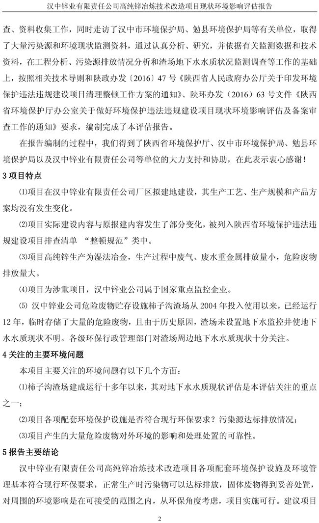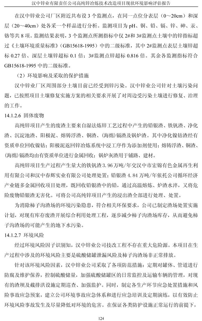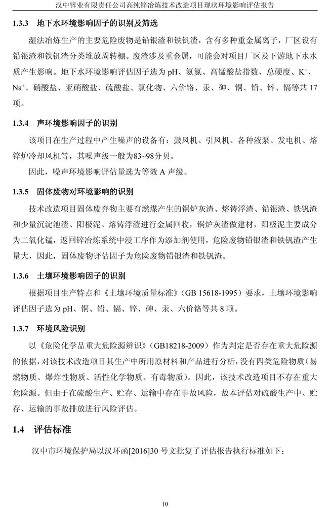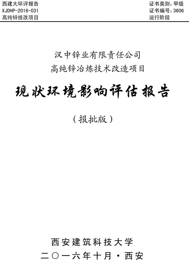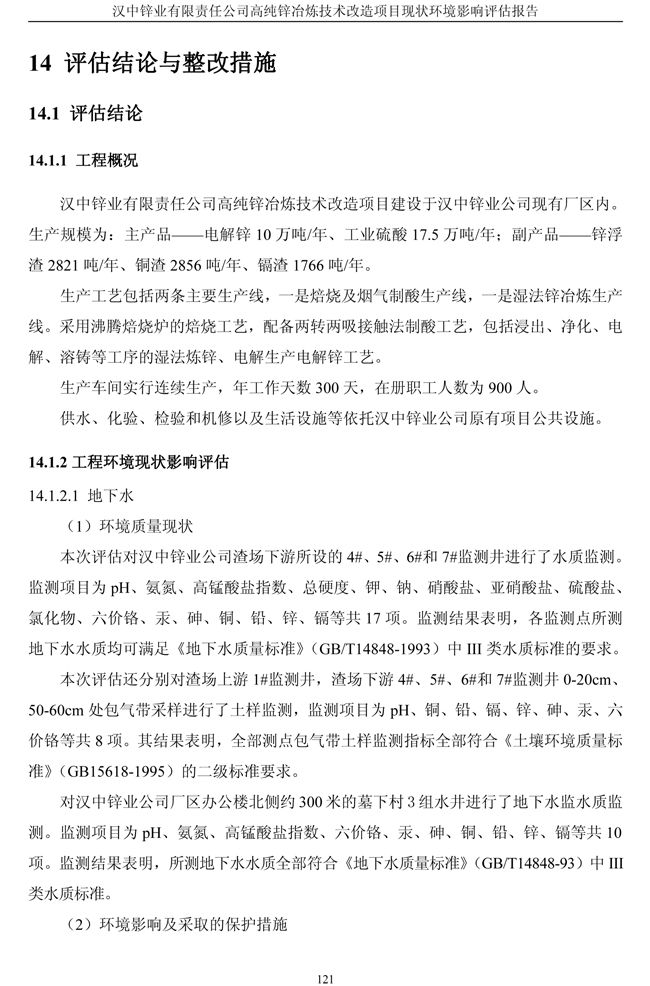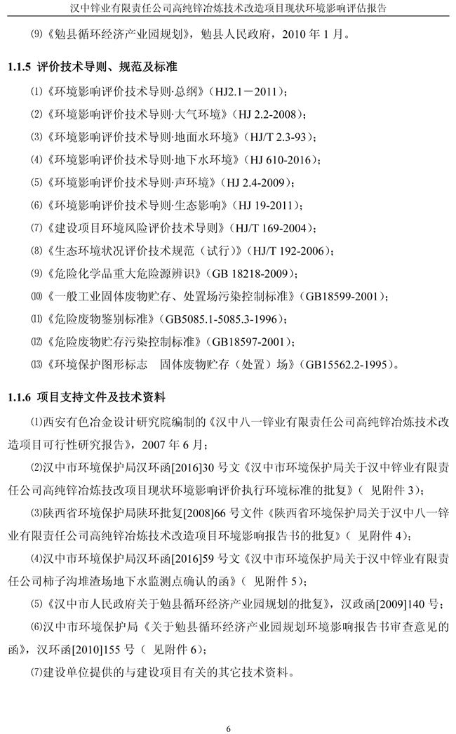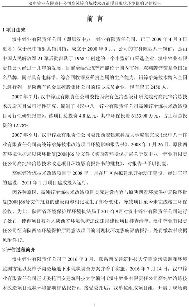 漢中鋅業(yè)公司高純鋅項(xiàng)目現(xiàn)狀環(huán)境影響評(píng)估報(bào)告