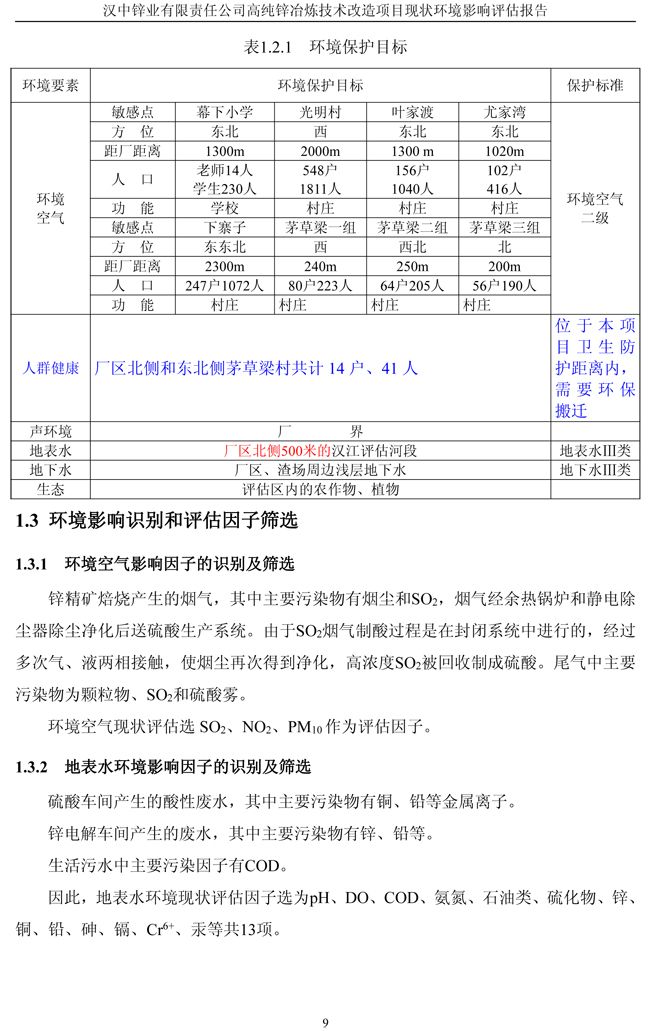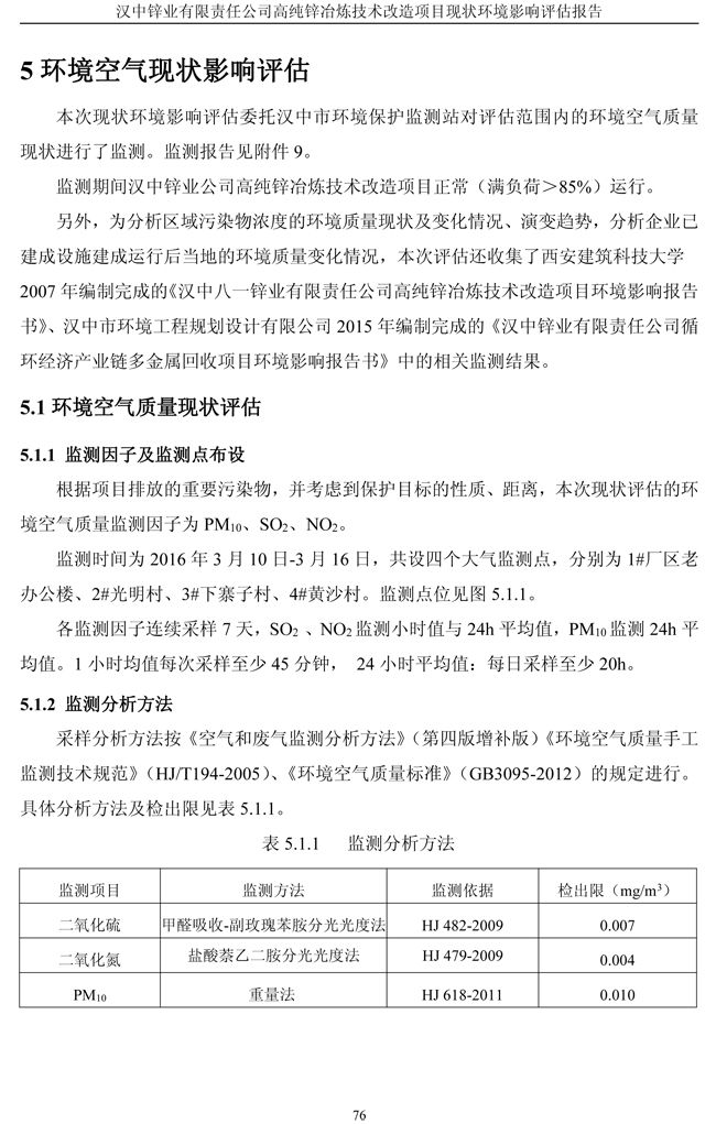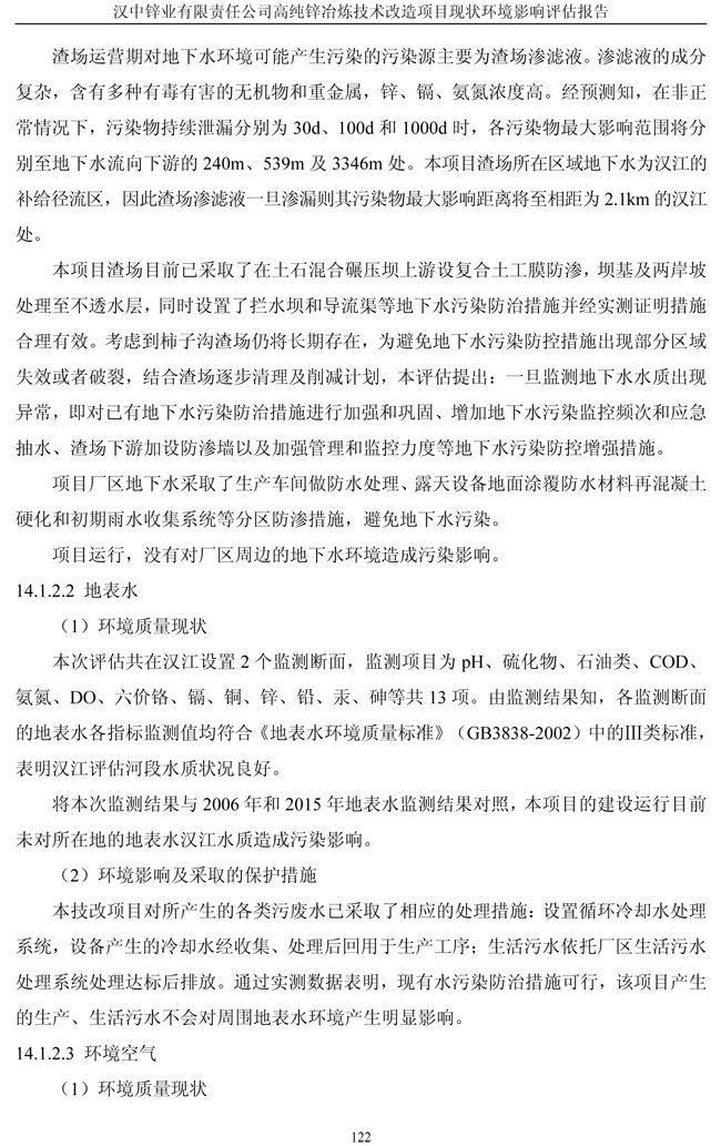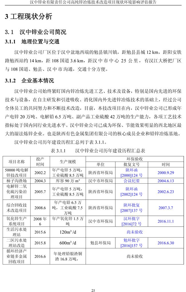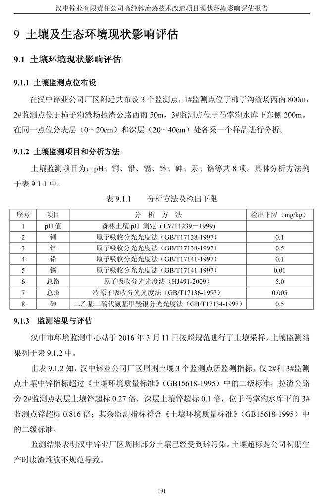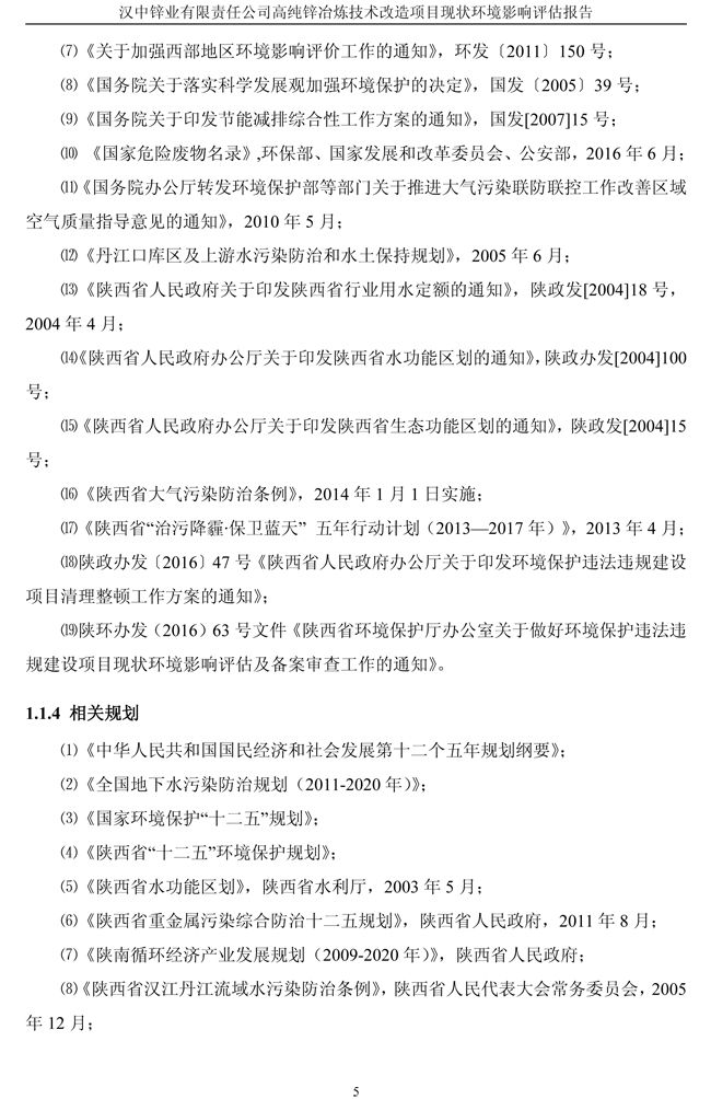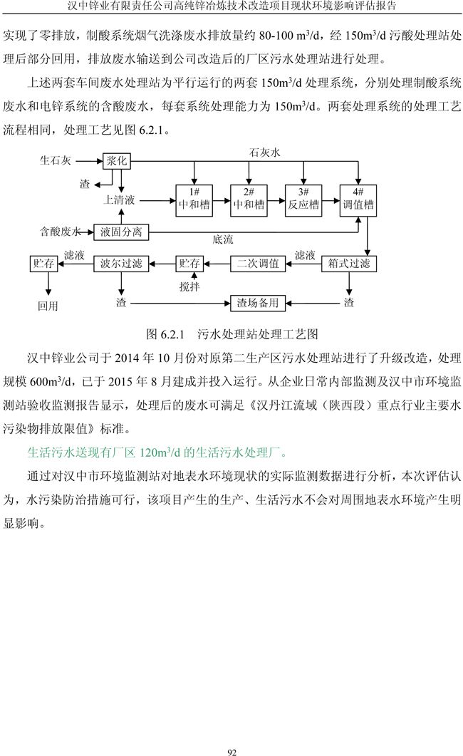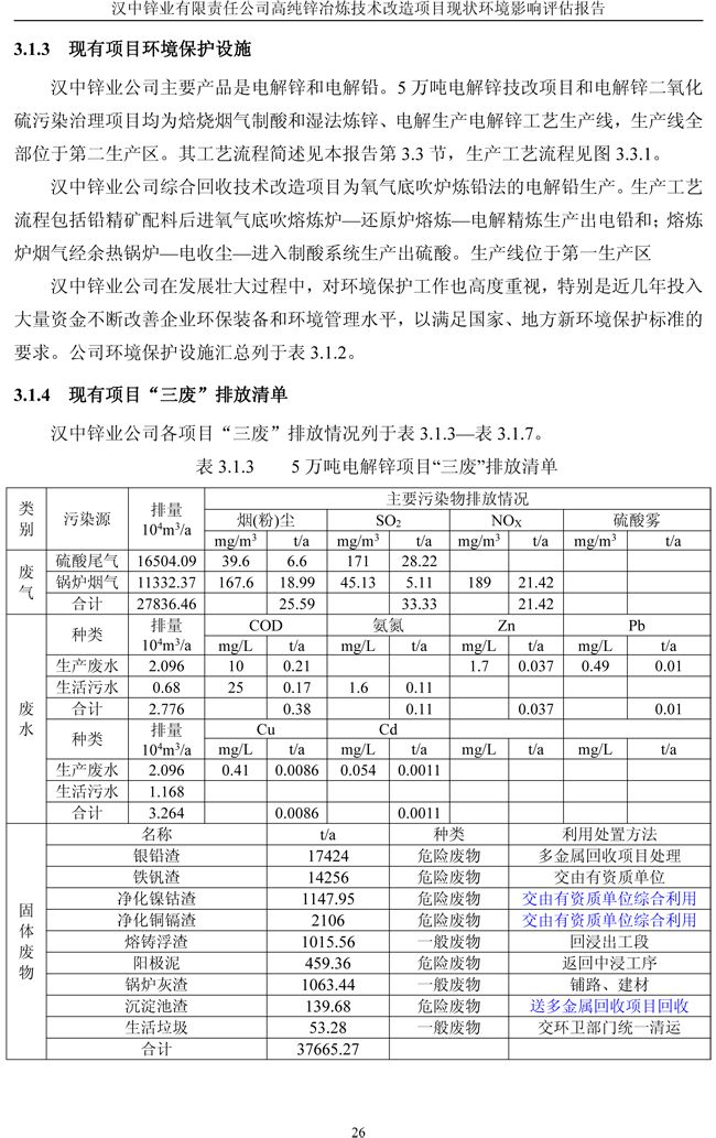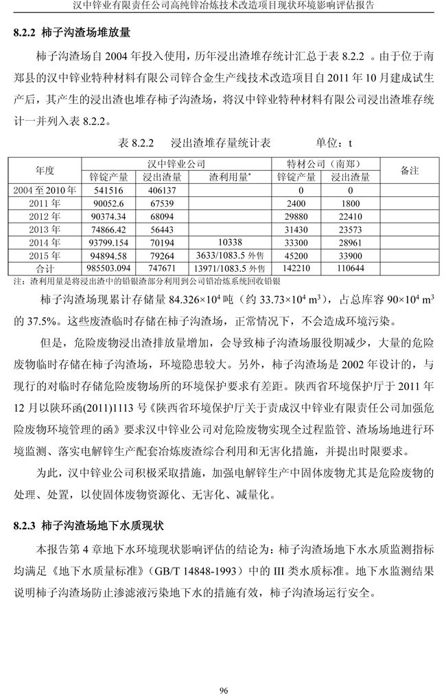 漢中鋅業(yè)公司高純鋅項(xiàng)目現(xiàn)狀環(huán)境影響評(píng)估報(bào)告
