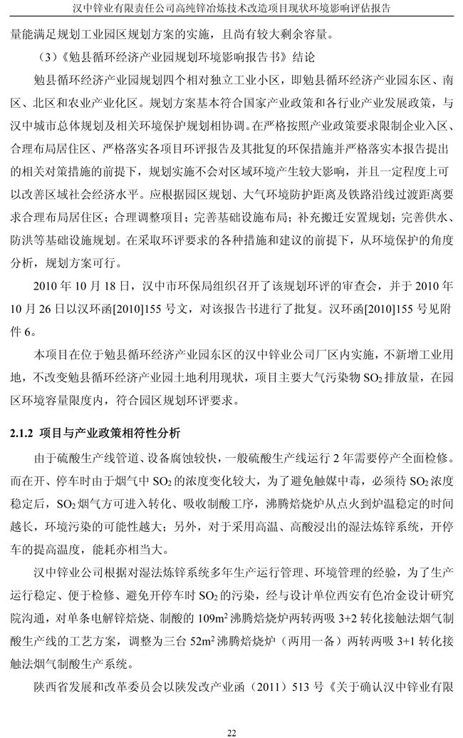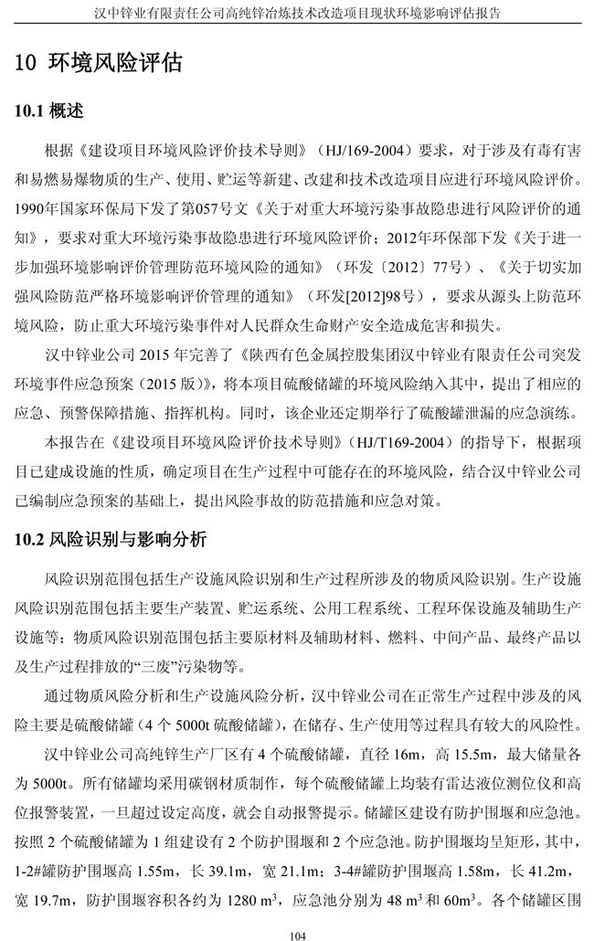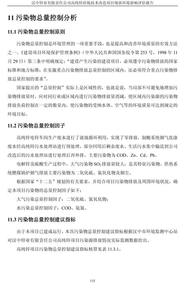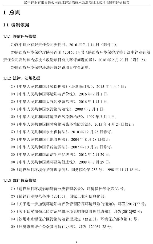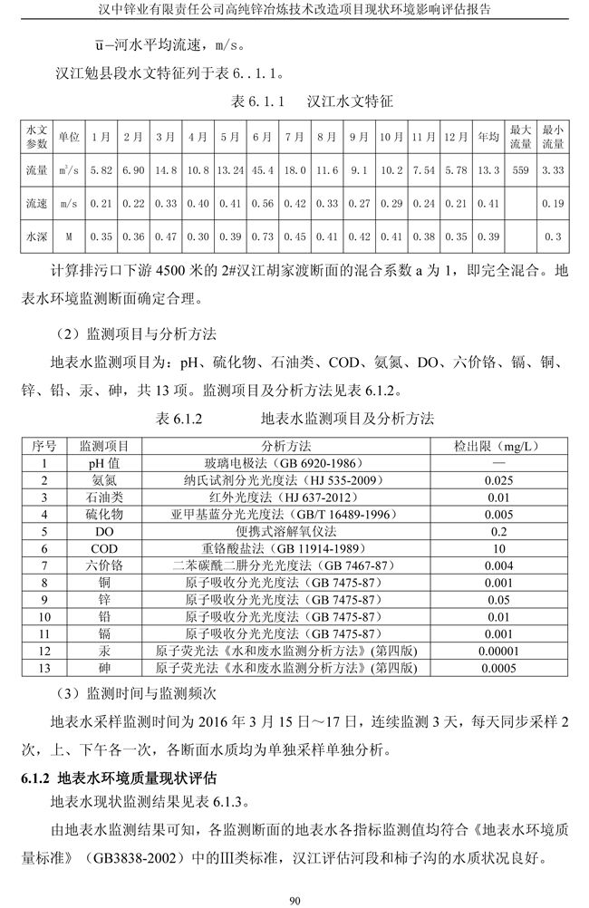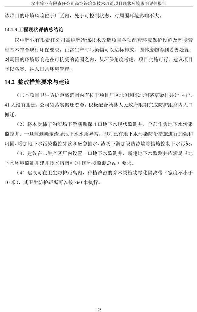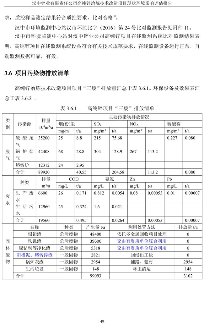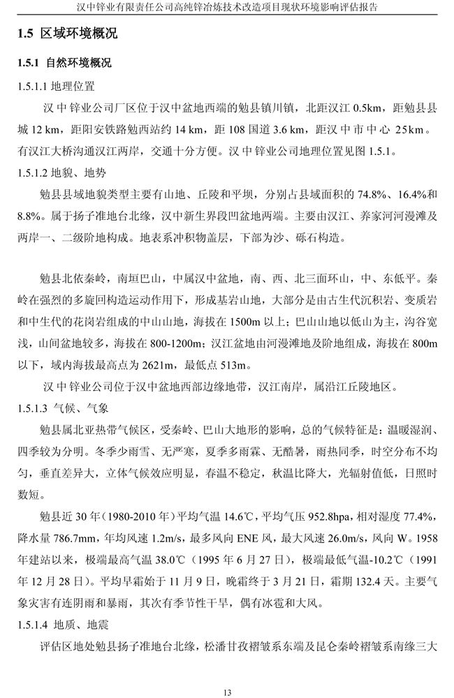 漢中鋅業(yè)公司高純鋅項(xiàng)目現(xiàn)狀環(huán)境影響評(píng)估報(bào)告