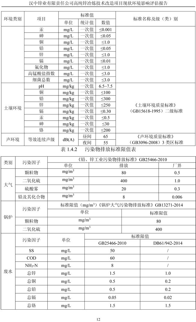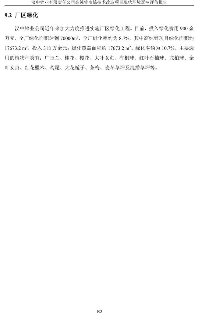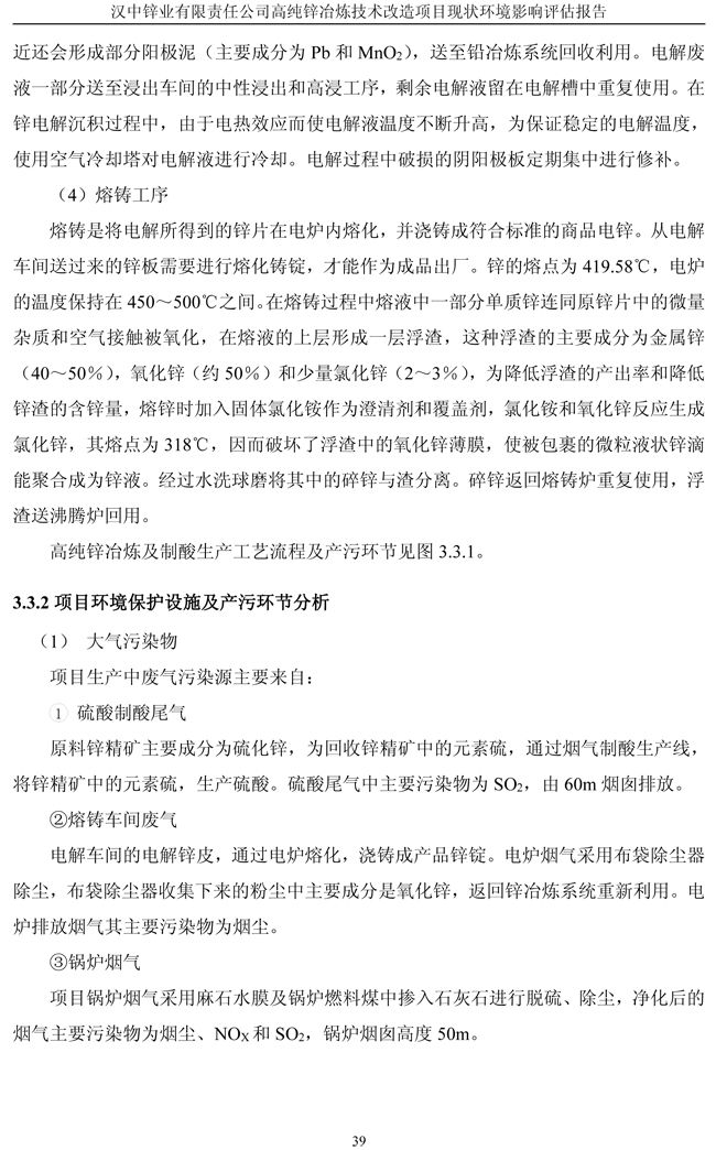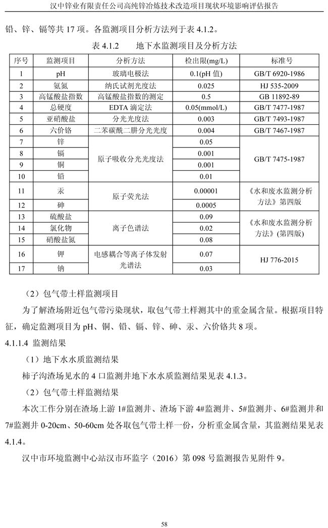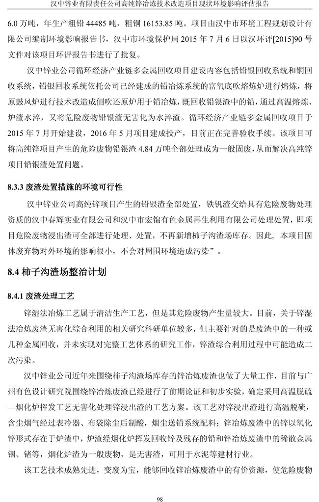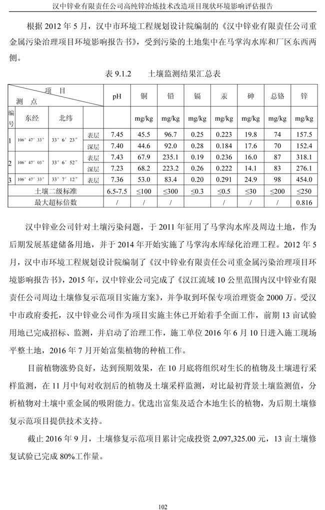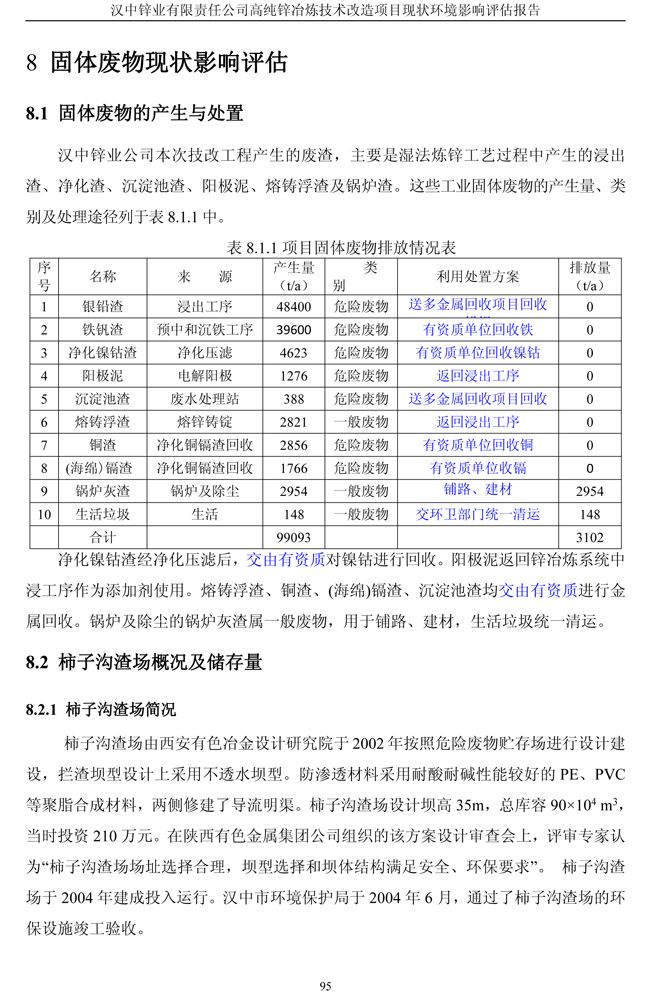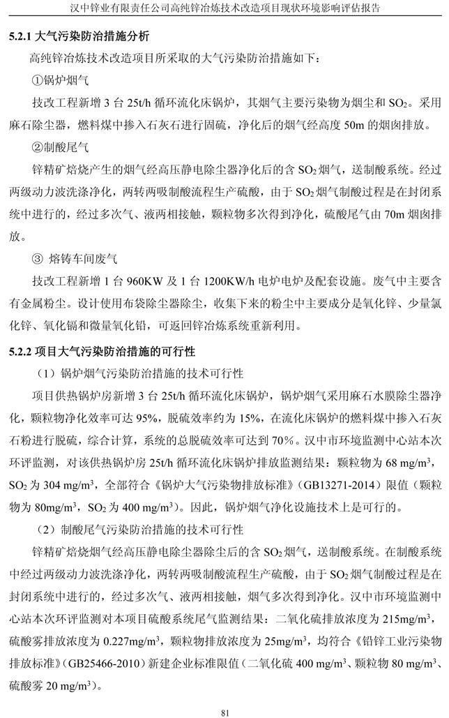 漢中鋅業(yè)公司高純鋅項(xiàng)目現(xiàn)狀環(huán)境影響評(píng)估報(bào)告