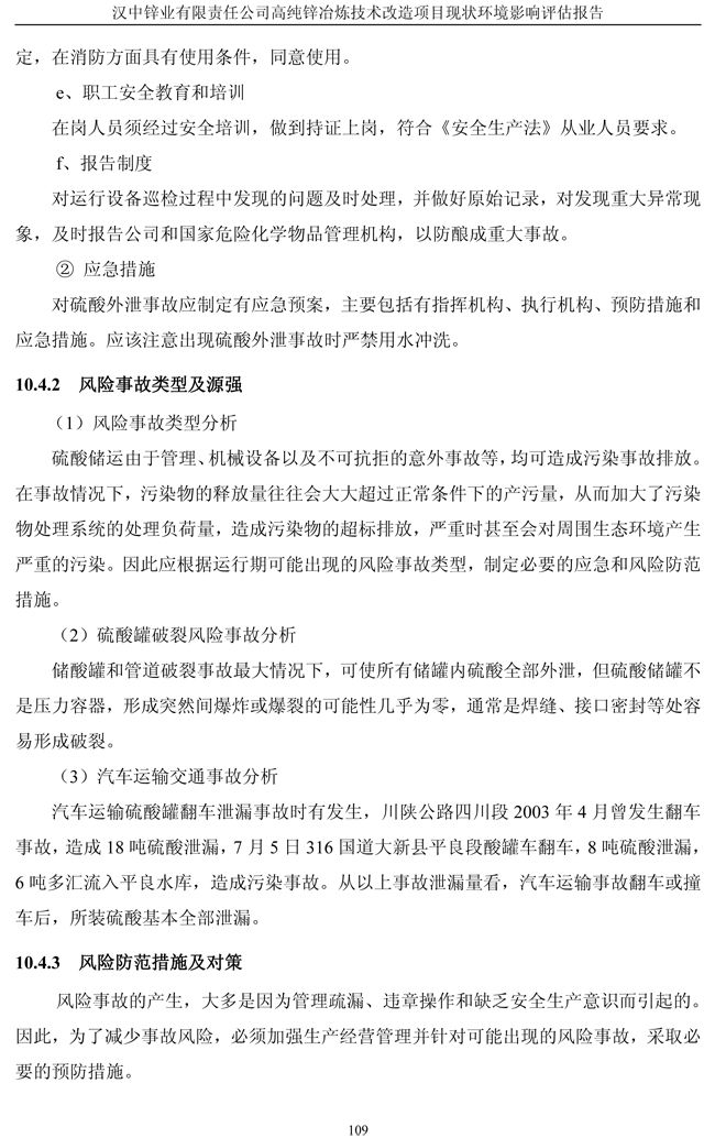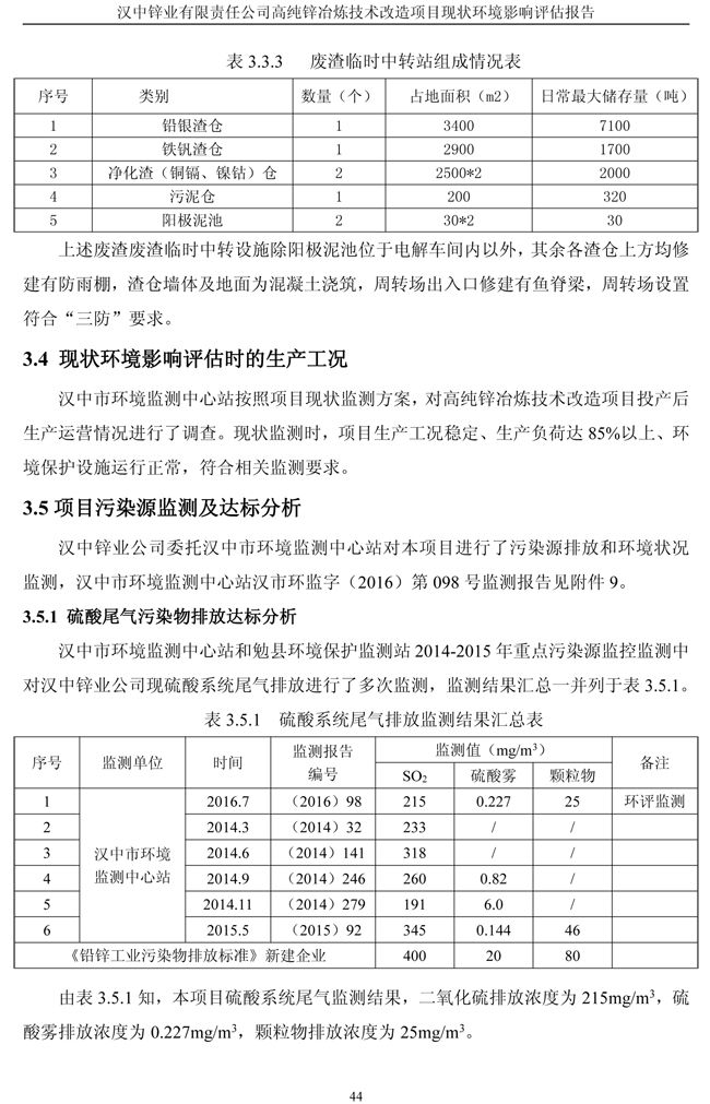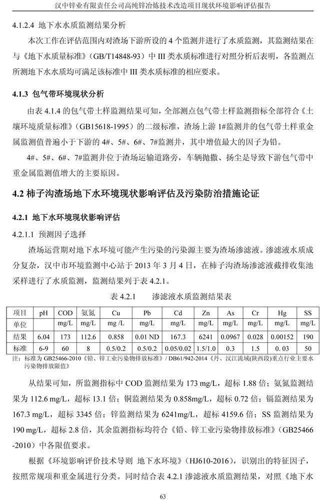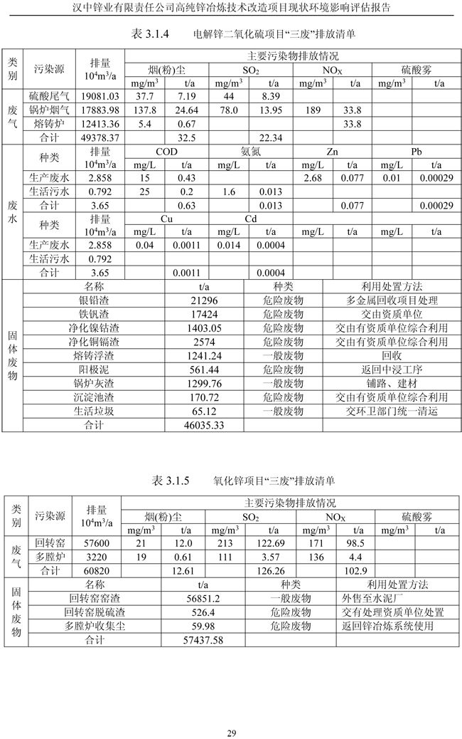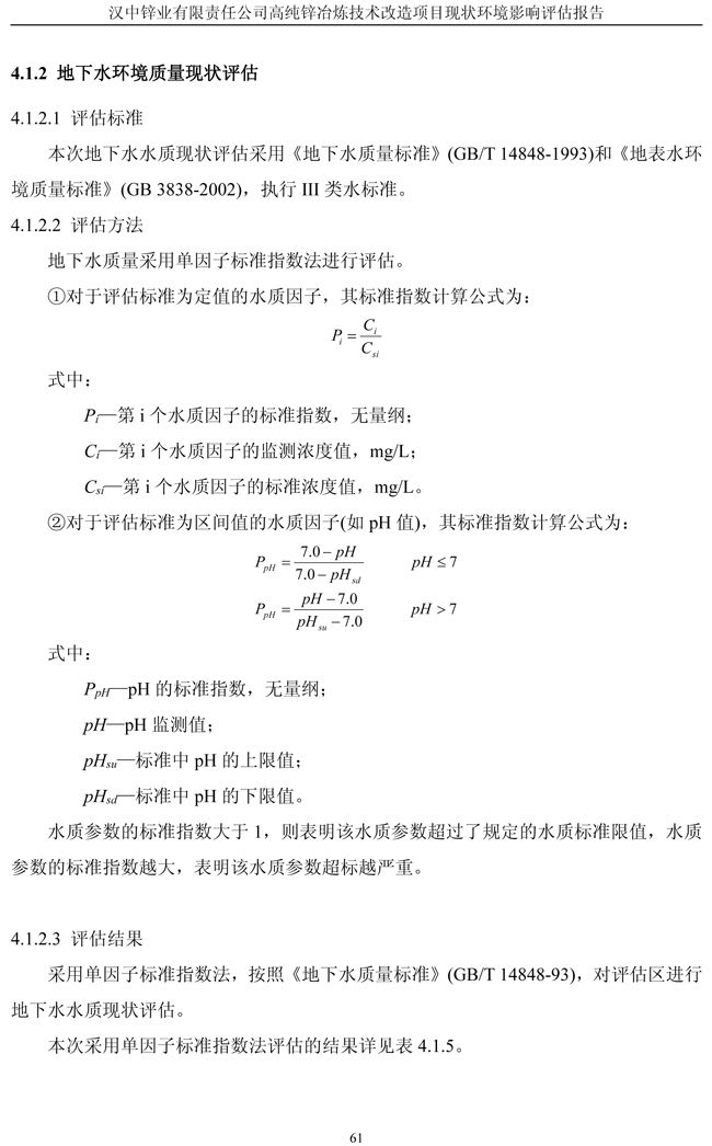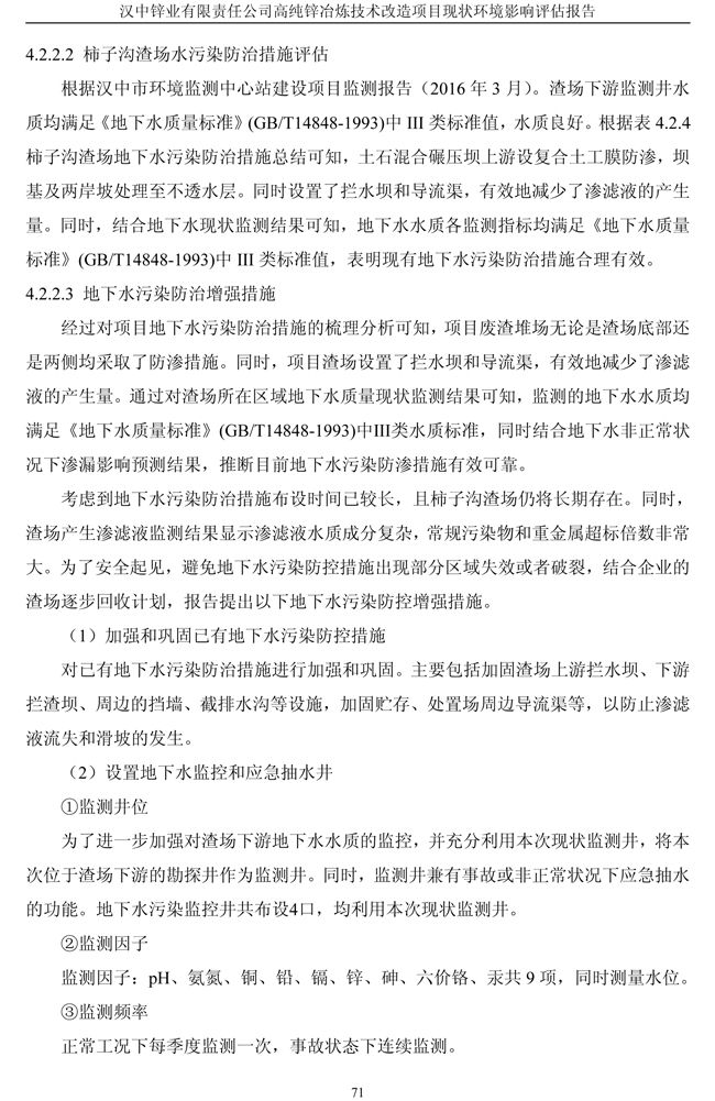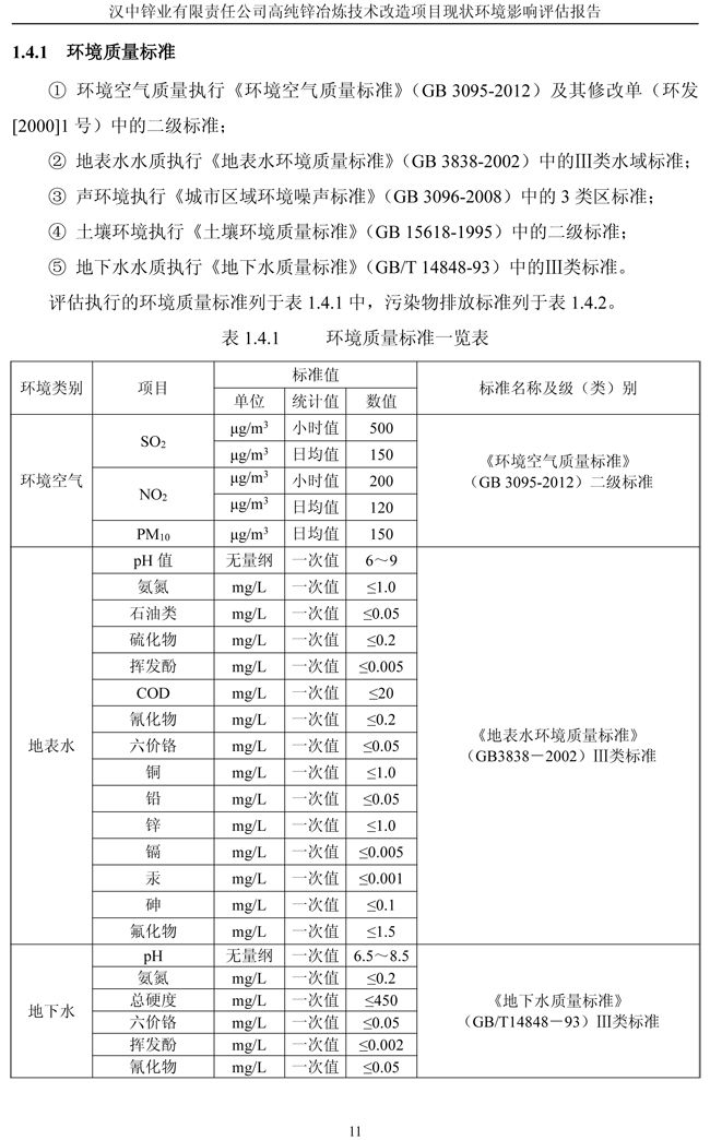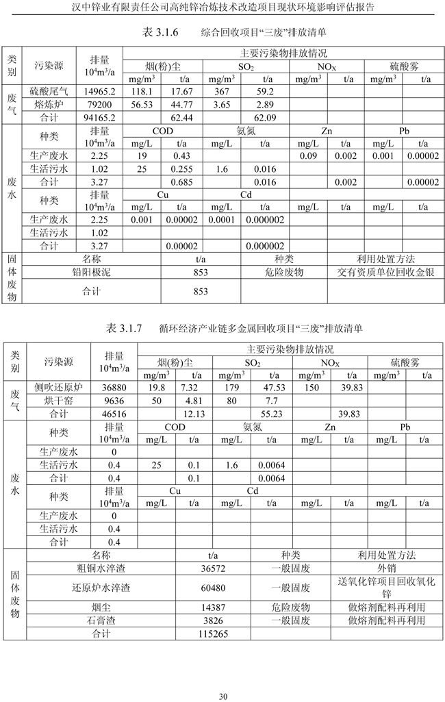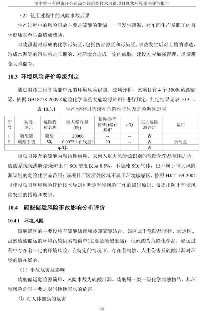 漢中鋅業(yè)公司高純鋅項(xiàng)目現(xiàn)狀環(huán)境影響評(píng)估報(bào)告