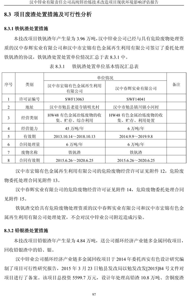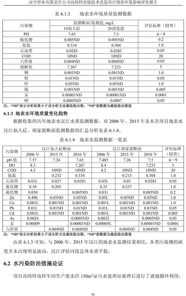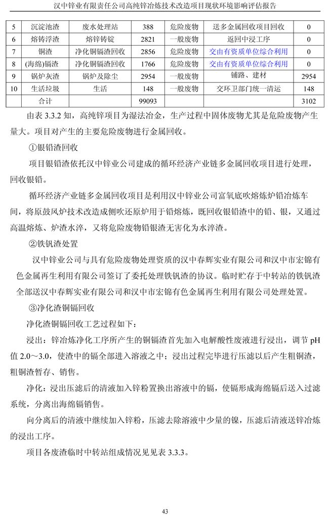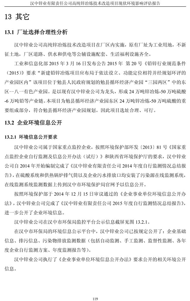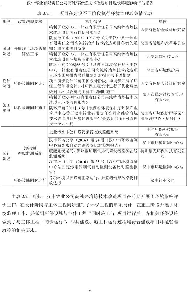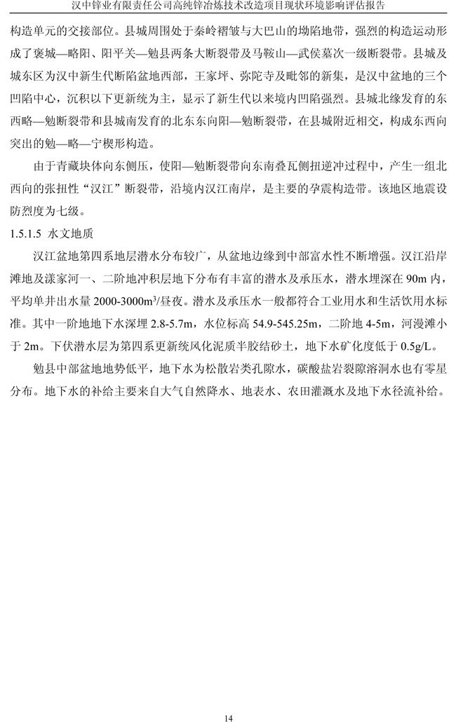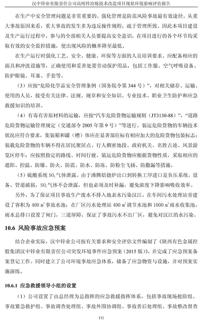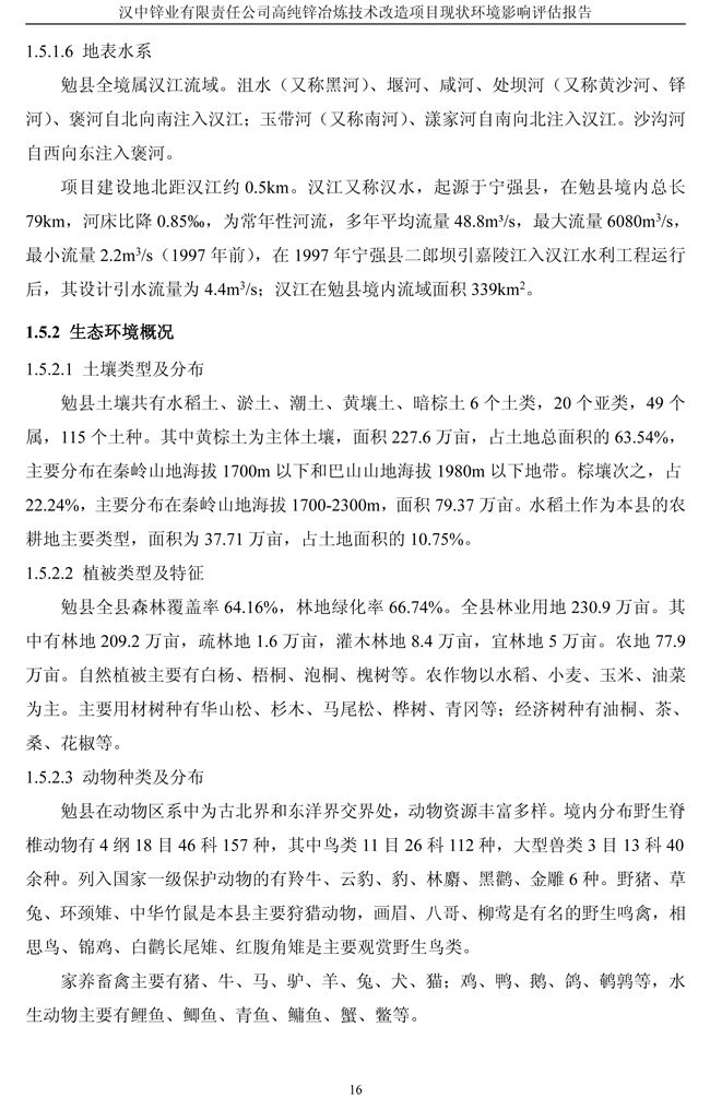漢中鋅業(yè)公司高純鋅項(xiàng)目現(xiàn)狀環(huán)境影響評(píng)估報(bào)告