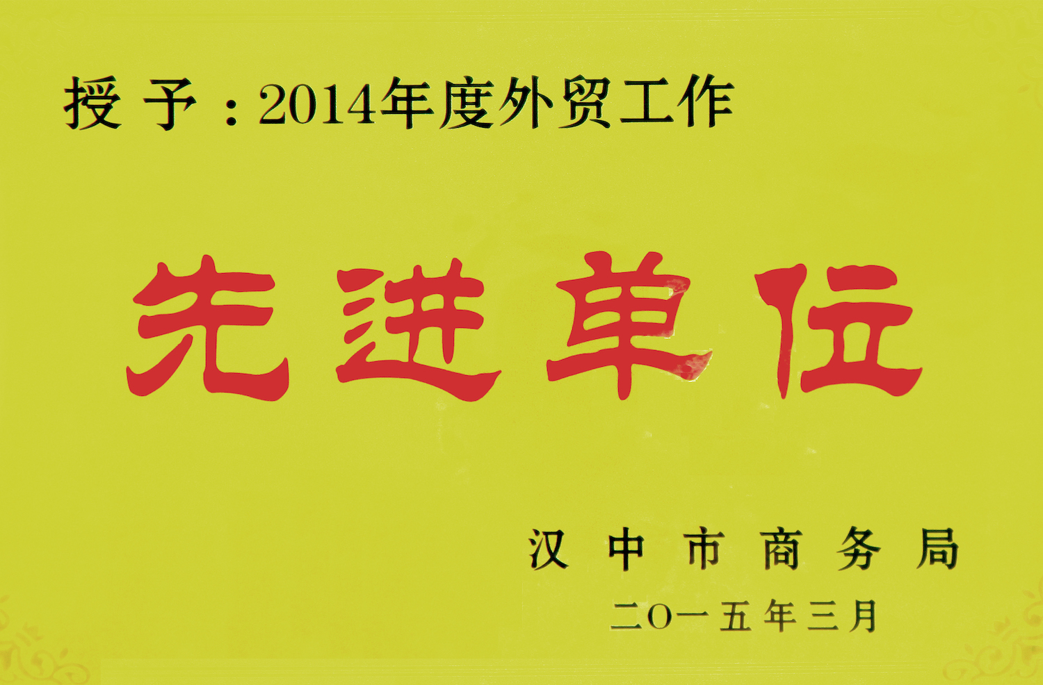 2014年度外貿(mào)工作先進(jìn)單位 -