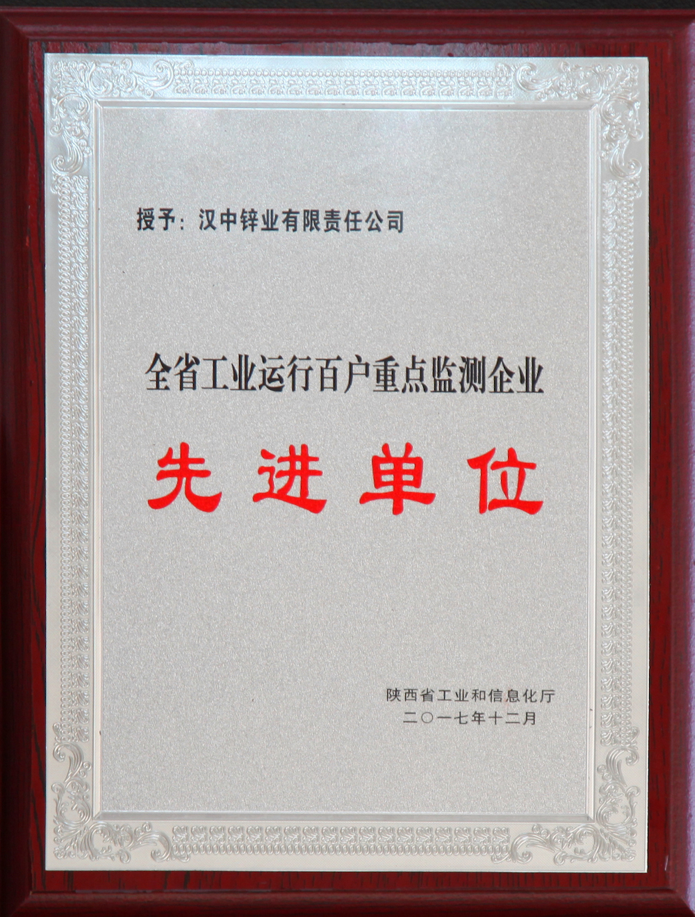 2007年陜西漢中八一鋅業(yè)有限責(zé)任公司創(chuàng)建“四好”領(lǐng)導(dǎo)班子先進(jìn)集體 -